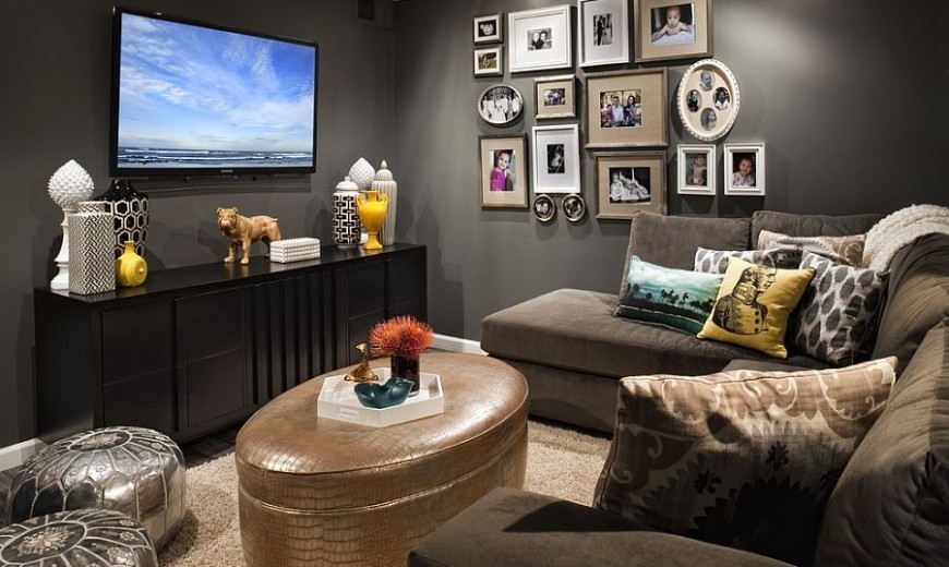 Storage ottoman and benches are good for extra seating in a small media room. These pieces can be placed around the TV or place next to the couch to create a conversation area. It can hold blankets and provide a place to rest your feet.