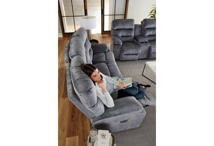 Conversation sofas can be ordered with recliners on the ends and a theater arm. This is an ideal setup for a small media room.