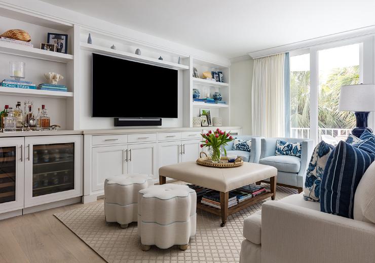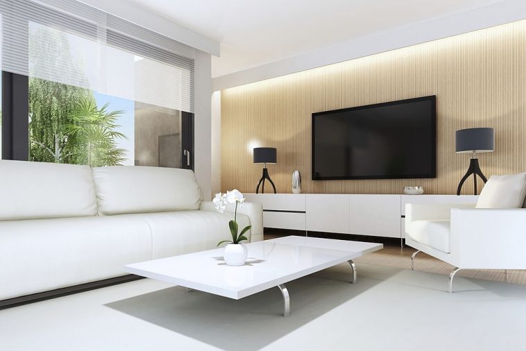 Clutter-free surfaces are essential if you want to design a media room that feels spacious and airy.