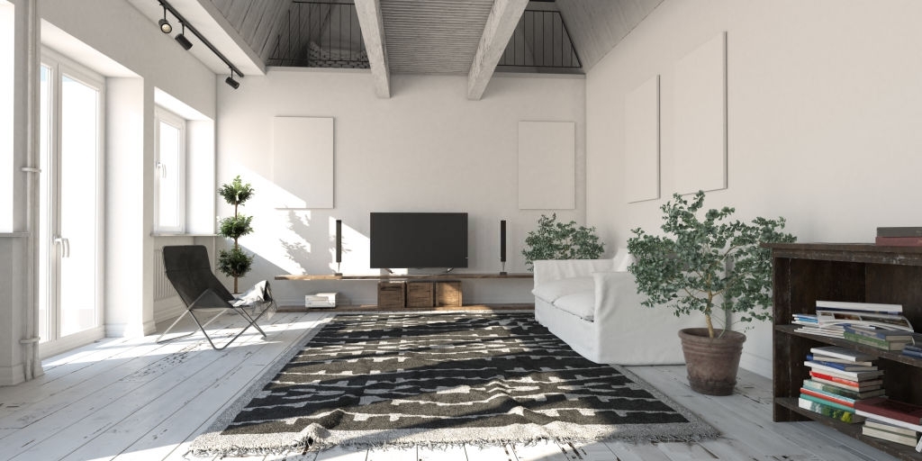 A patterned area rug will provide a warm and cozy feel to your media room.
